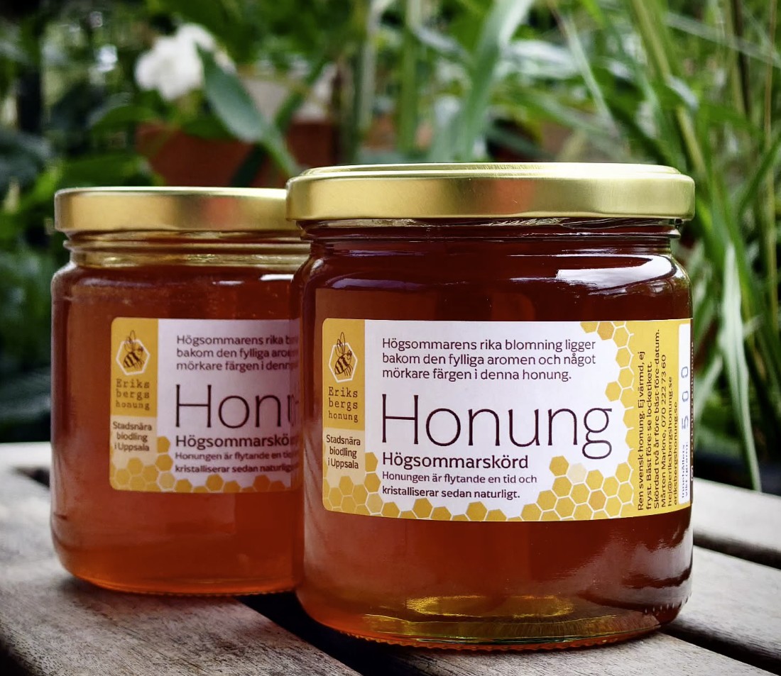 Sommarhonung från bikupor i villaträdgårdar i Eriksberg, Flogsta och Norby i Uppsala. Säljs via webbshop och Reko och utvalda lokala butiker, tex Tantens Gröna Skafferi i Hågaby.